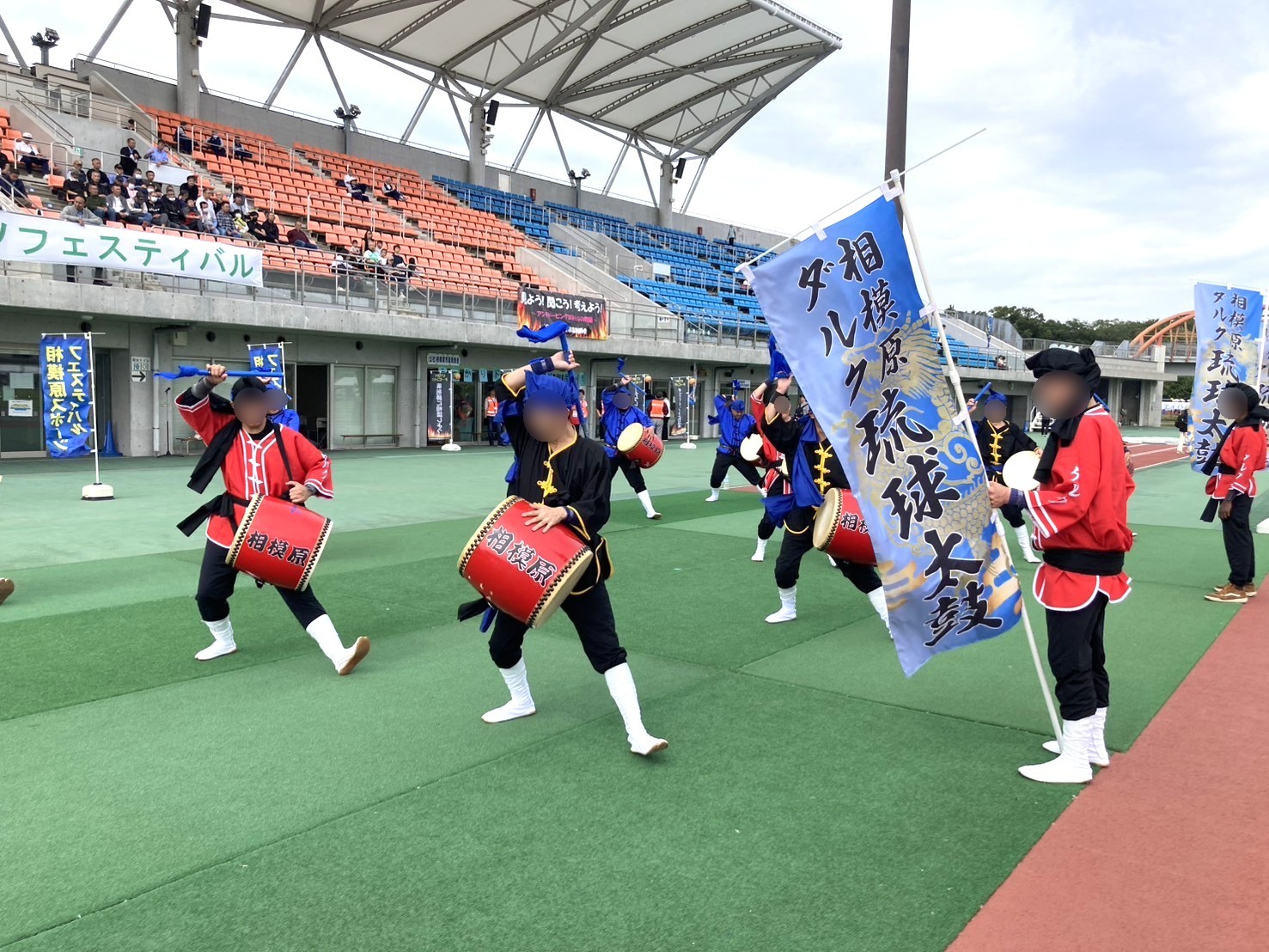 毎年参加させて頂いていて、今年もエイサー演舞をおこなわせていただきました。