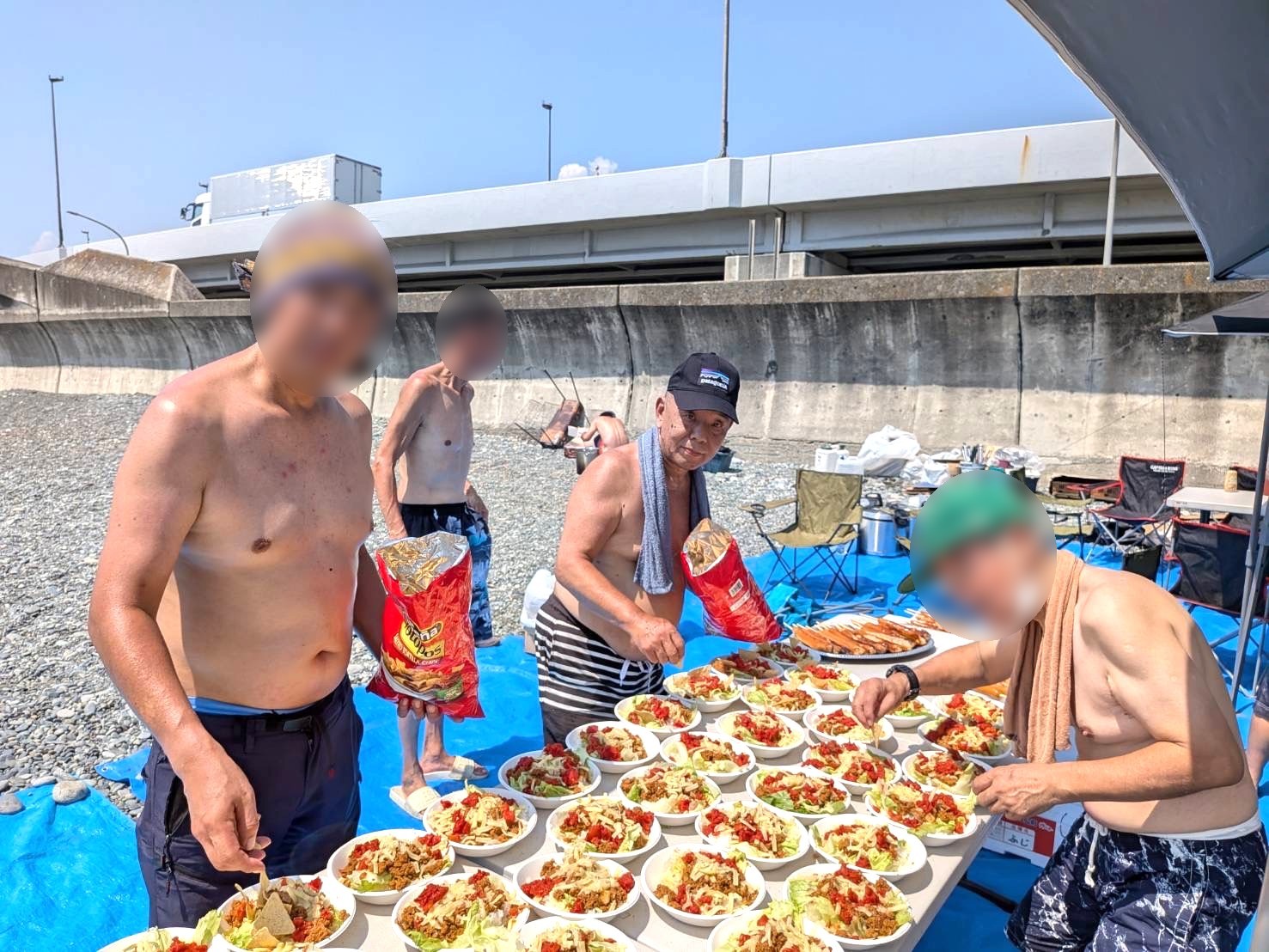 また、海でタコライスを作り、みんなで一緒に食べました。