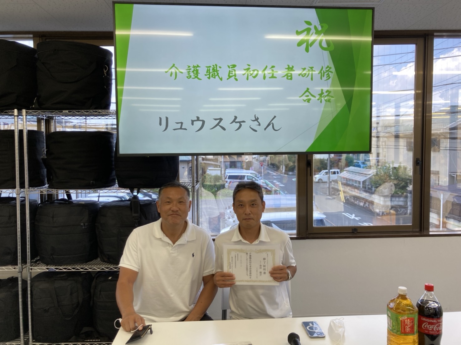 金田施設長の介護職員研修合格に伴い、祝賀会を行いました。