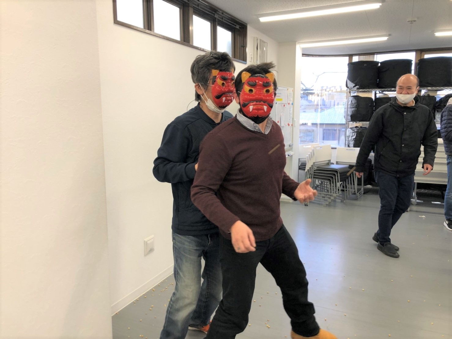 節分の豆まきの模様です。昼食は恵方巻きをいただきました。