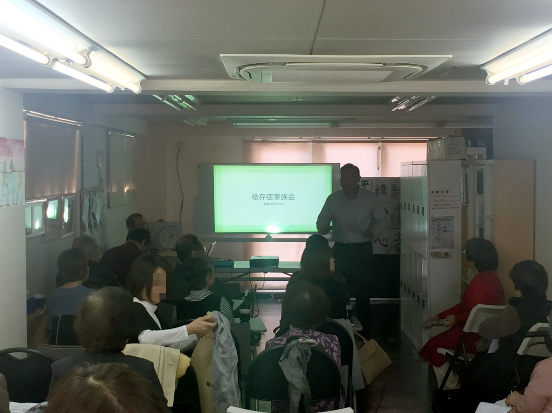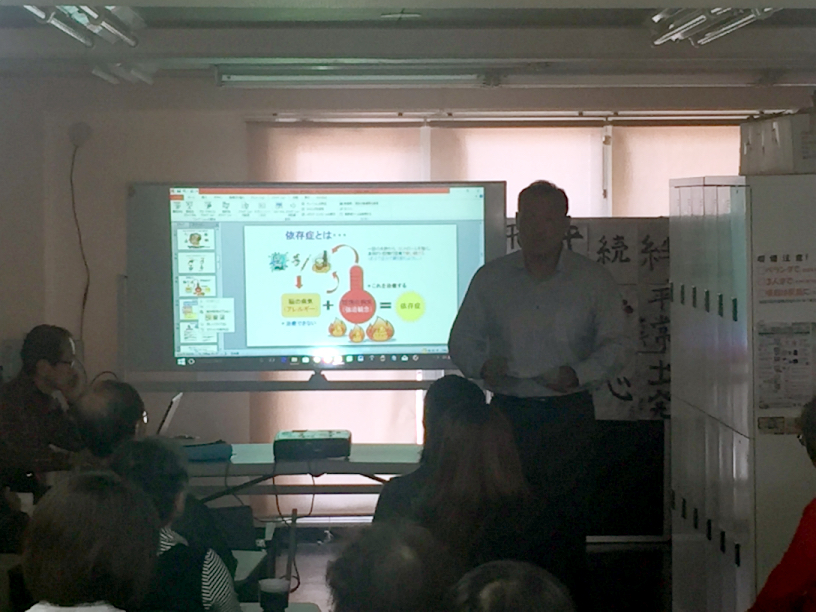 田中代表挨拶:ポールさんは、僕の回復のきっかけを作ってくれた師匠です。ステップ1に戻るといいますが、ポールさんの話は何度聞いても初心に戻ります。8年前、こんがらかって自分の力でやめられと思っていた自分を思い出します。ぜひしっかり聞いて何でも質問してください。なお4月15日にはダルクと家族会と合同で花見をする予定で計画中です。ぜひご参加下さい。