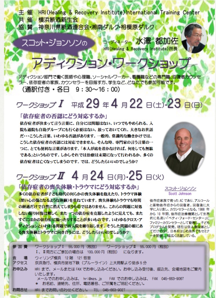 当法人が協賛しているHRI主催のアディクションワークショップの模様です。