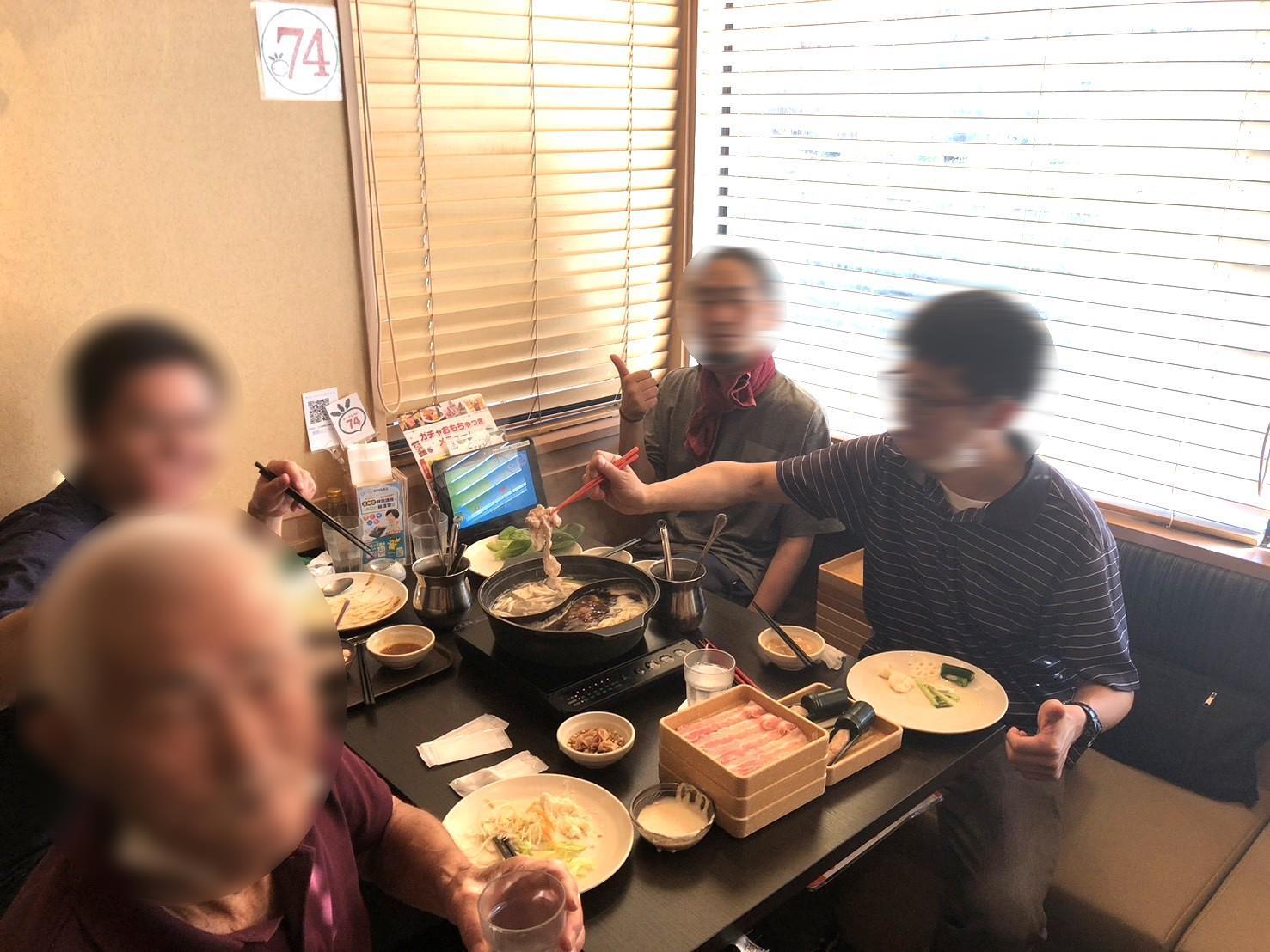今週のプレジャープログラムは食べ放題(しゃぶしゃぶとお好み焼き)でした。